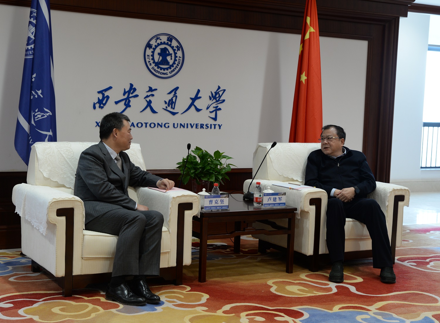 签约仪式前,陕西省委常委、西安交大党委书记卢建军接见了参加签约的有关人员。在长达一个小时的接见中,卢书记就如何将高校科研成果产业化,打通“产学研合作壁垒”对企业提出了希望,勉励开山要把“企业当事业经营”,希望合作取得切实的成果。曹克坚董事长向卢书记简要汇报了开山股份15年来与西交大合作的成果,以及在合作过程中的心得体会。